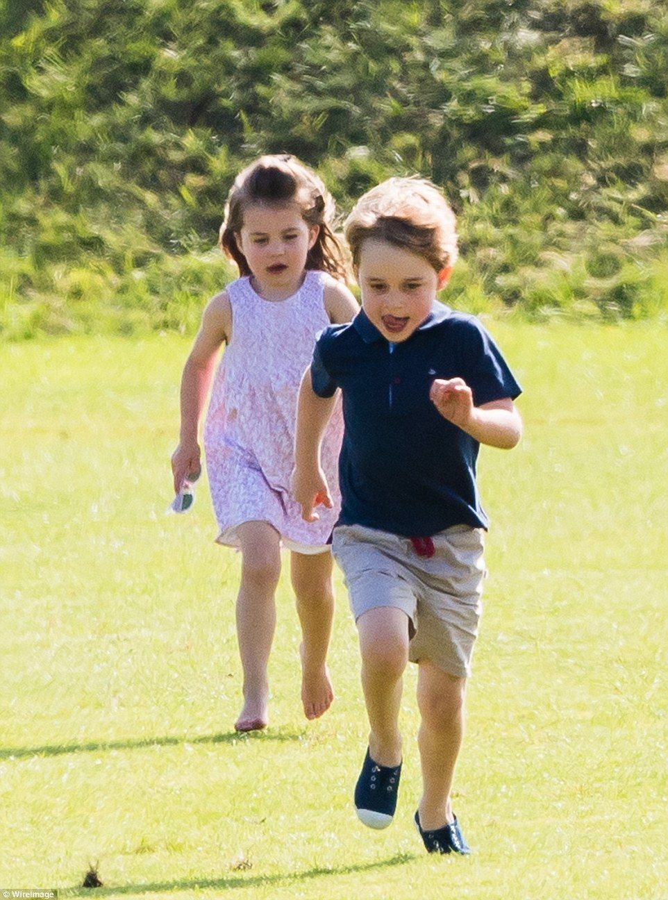喬治小王子在格洛斯特郡的博福特馬球俱樂部的場地裡嬉戲,與他的妹妹夏洛特公主一起度過充滿活力的一天。