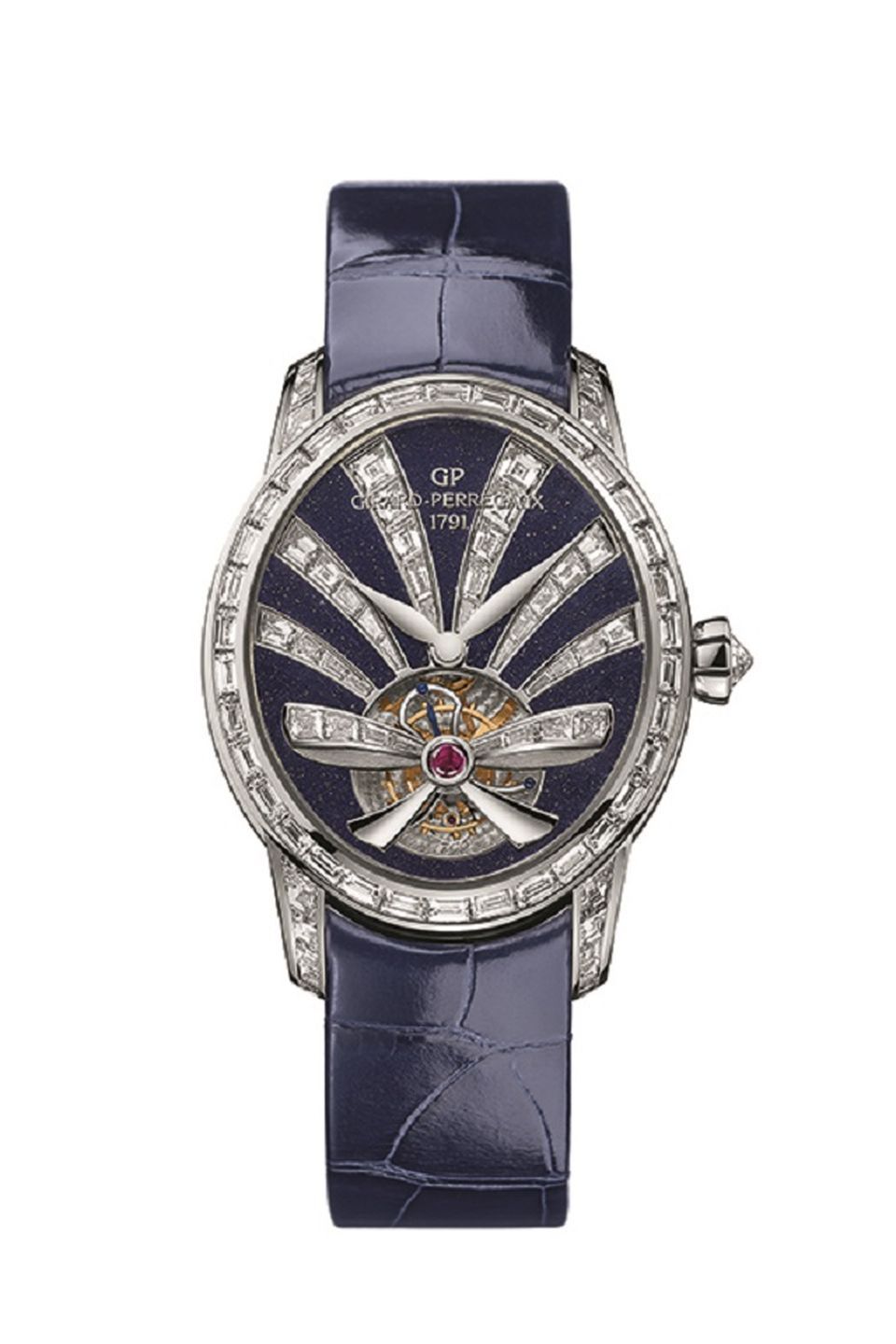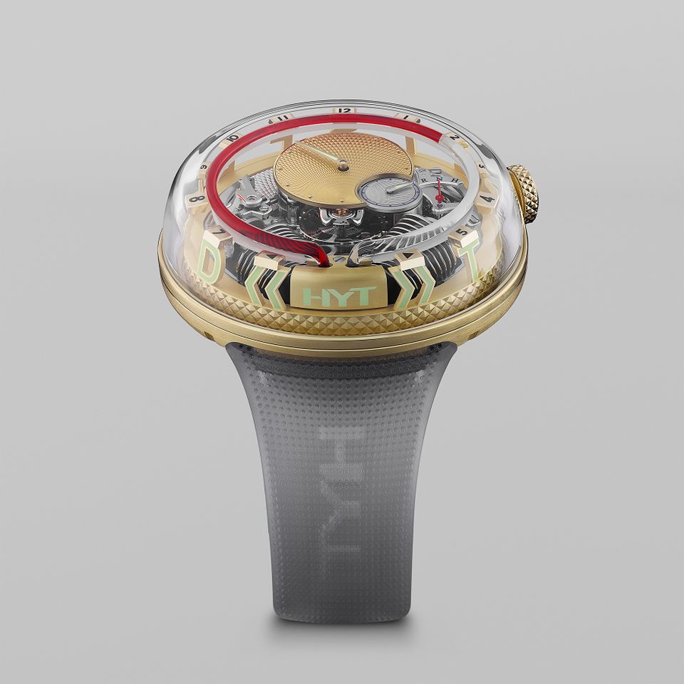 HYT是唯一一家使用液體為其手錶供電的瑞士奢侈手錶品牌。對於其最新發明,它使用這種製造概念作為美學陳述,通過在表的透明凸起表圈周圍產生「光陰如流水」字樣。這款51毫米錶殼採用圓頂藍寶石水晶鏡面,搭配18k黃金。紅色流體線表示小時數,而分鐘和秒數分別位於12點鐘和3點鐘位於扭索飾紋小錶盤上。限量20件。(編譯:王明真)