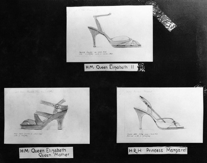 女王的母親、瑪格麗特公主和伊麗莎白女王二世的鞋子素描畫。