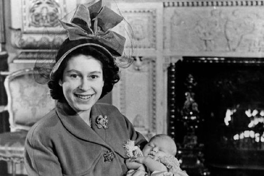 1948年12月15日:在英國倫敦白金漢宮拍攝的照片,圖左為伊麗莎白公主,抱著剛洗禮後的兒子查爾斯王子(Prince Charles of Edinburgh)。