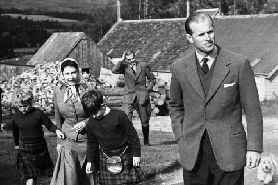 1960年9月8日:女王伊麗莎白二世和她的丈夫愛丁堡公爵,以及他們的孩子安妮公主、查爾斯王子、安德魯王子(Prince Andrew)在去巴爾莫勒爾的第一個假期。