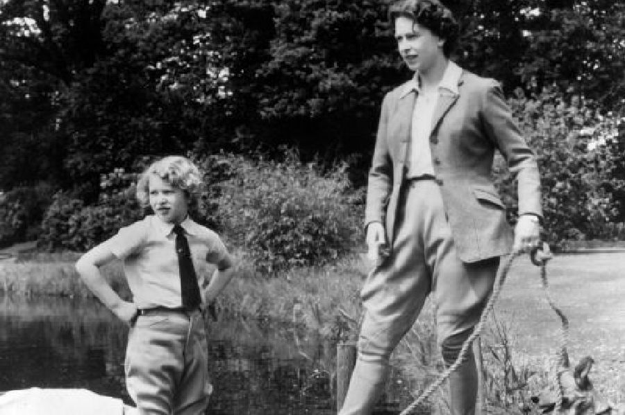 1959年11月1日:女王伊麗莎白二世與女兒安妮公主在溫莎堡的弗洛格摩湖(Frogmore lake)泛舟。