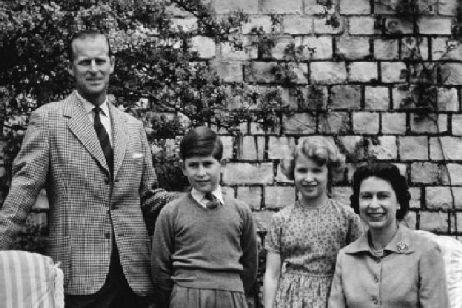 1959年6月:伊麗莎白二世、愛丁堡公爵、查爾斯王子、安妮公主在溫莎堡合影。