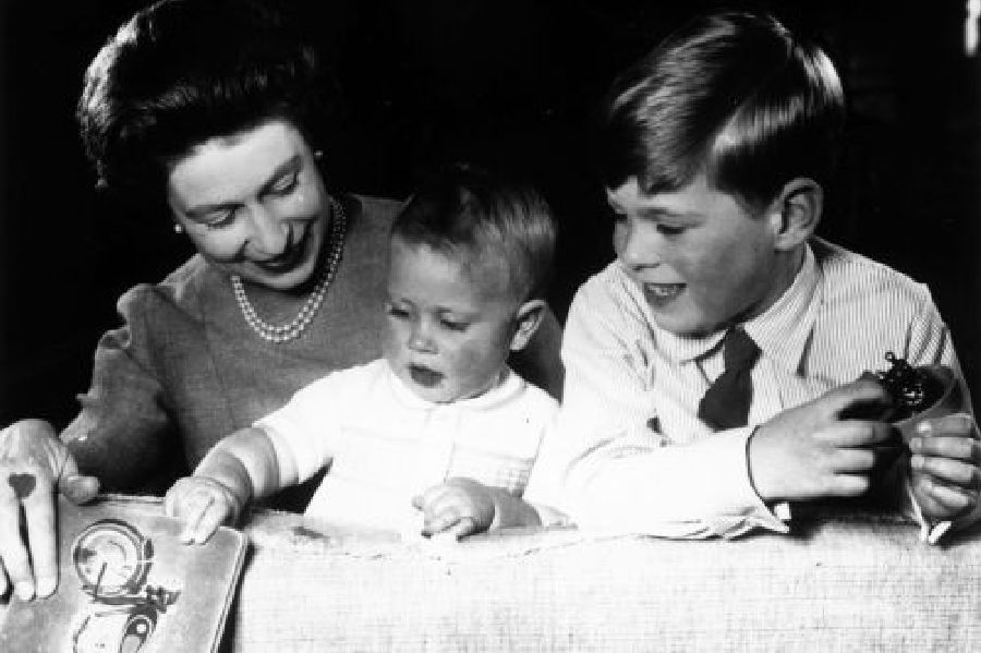 1965年6月:女王伊麗莎白二世在溫莎堡,陪查爾斯王子、安德魯王子玩。