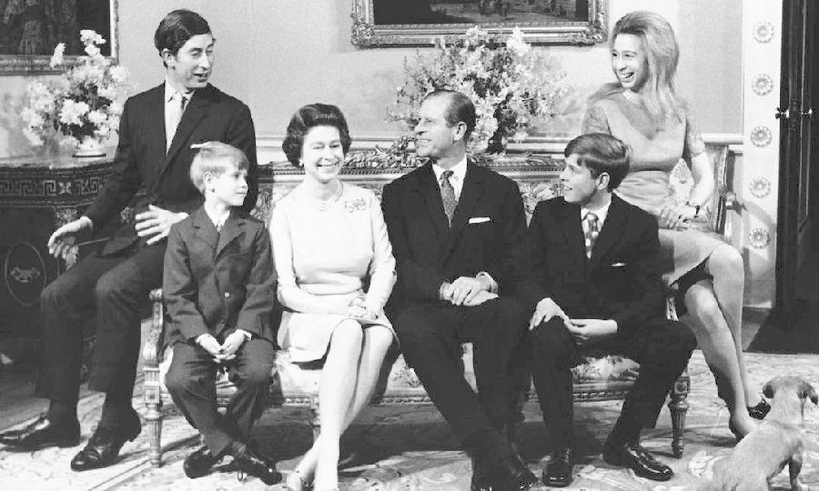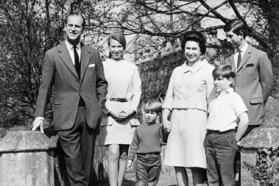 1968年4月18日:伊麗莎白女王和菲利普親王與子女(查爾斯王子、安妮公主、安德魯王子、愛德華王子)在溫莎堡的花園合影。