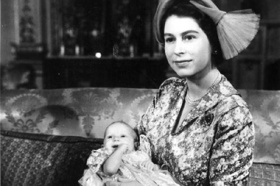 1950年10月21日:伊麗莎白公主和她的小女兒安妮公主(Princess Anne),後者穿著皇家洗禮袍。