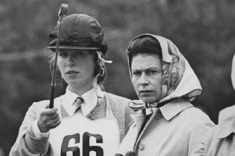 1968年8月3日:安妮公主和母親伊麗莎白二世在東薩塞克斯郡(East Sussex)舉行的埃里奇馬賽(the Eridge Horse Trials)中合影。
