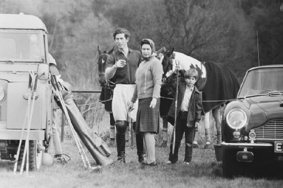 1971年5月1日:查爾斯王子參加在溫莎大公園(Windsor Great Park)舉行的馬球比賽。作陪的有英國女王和愛德華王子。