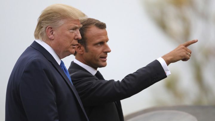 法國總統伊曼紐爾·馬克龍(Emmanuel Macron)和特朗普總統在2019年8月24日在法國西南部的比亞里茨燈塔上。