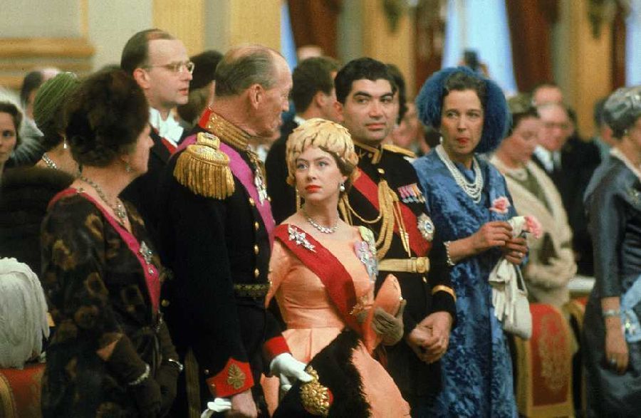 1961年1月1日,身著橙色禮服的瑪格麗特公主參加比利時鮑杜因國王(King Baudoin)和法比奧拉(Fabiola)的婚禮時,與瑞典的貝蒂爾親王(Prince Bertil)、伊朗的帕勒維親王(Prince Golam Reza Pahlevi)和意大利前女王何塞(Marie Jose)一起。