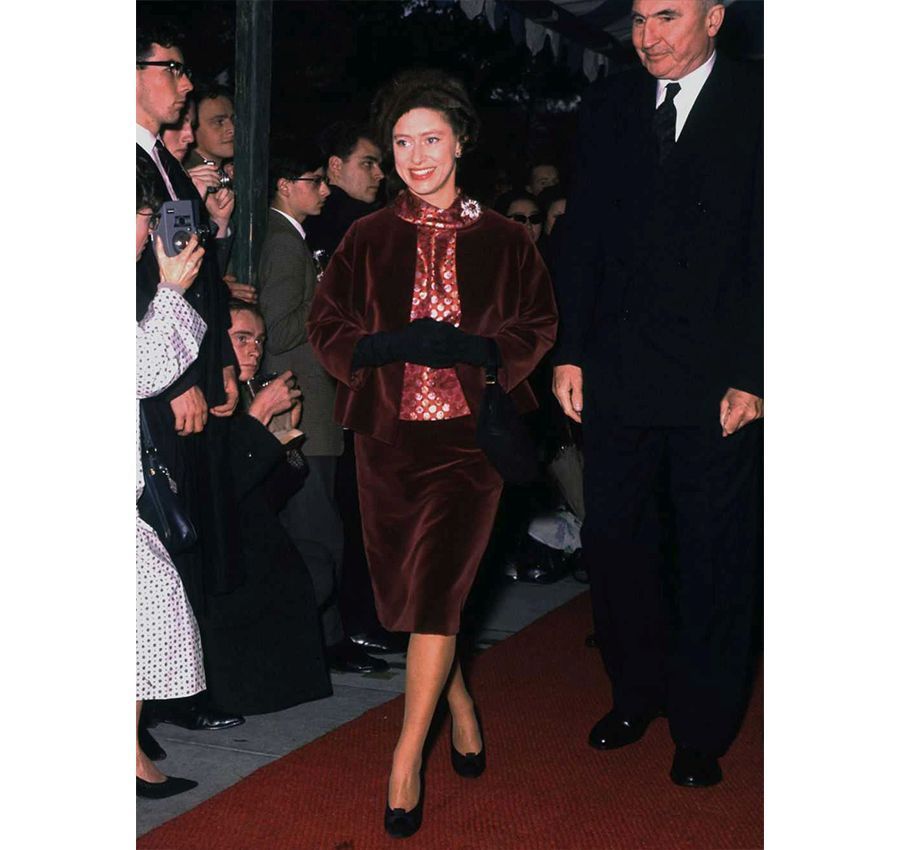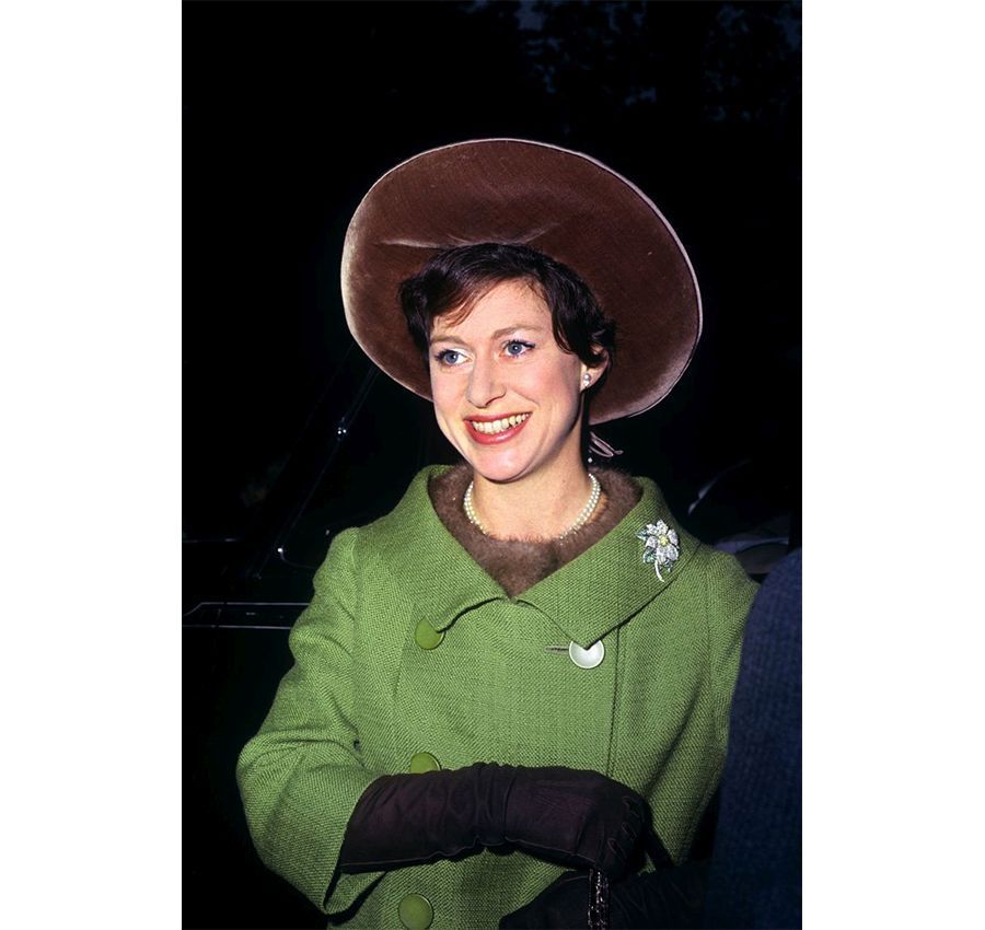 1965年,倫敦布盧姆斯伯里(Bloomsbury)的世界盲人中心(the Word Blind Center)開幕時,瑪格麗特公主戴著棕色的帽子,搭配綠色外套和鑲有珠寶的胸針。
