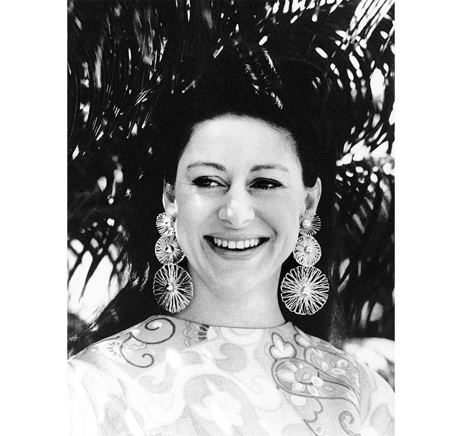 1969年,瑪格麗特公主在肯辛頓宮(Kensington Palace)戴著一對非常時髦的耳環。