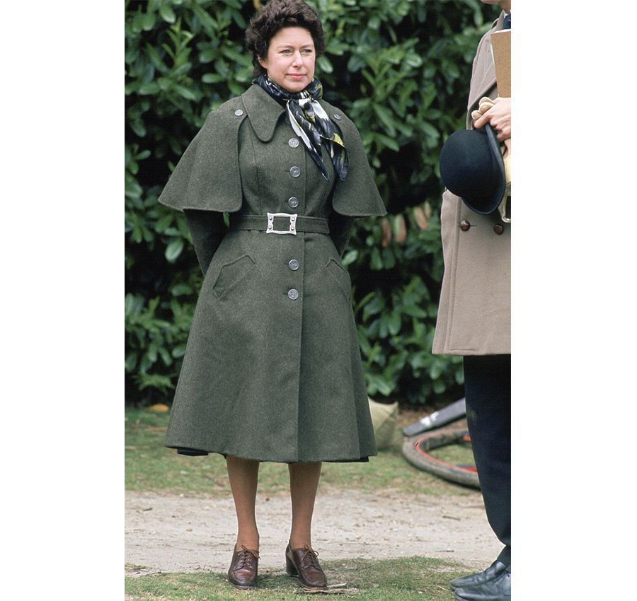 1975年5月22日,瑪格麗特公主在溫莎馬展(the Windsor Horse Show)上,穿著綠色外套和棕色皮鞋。