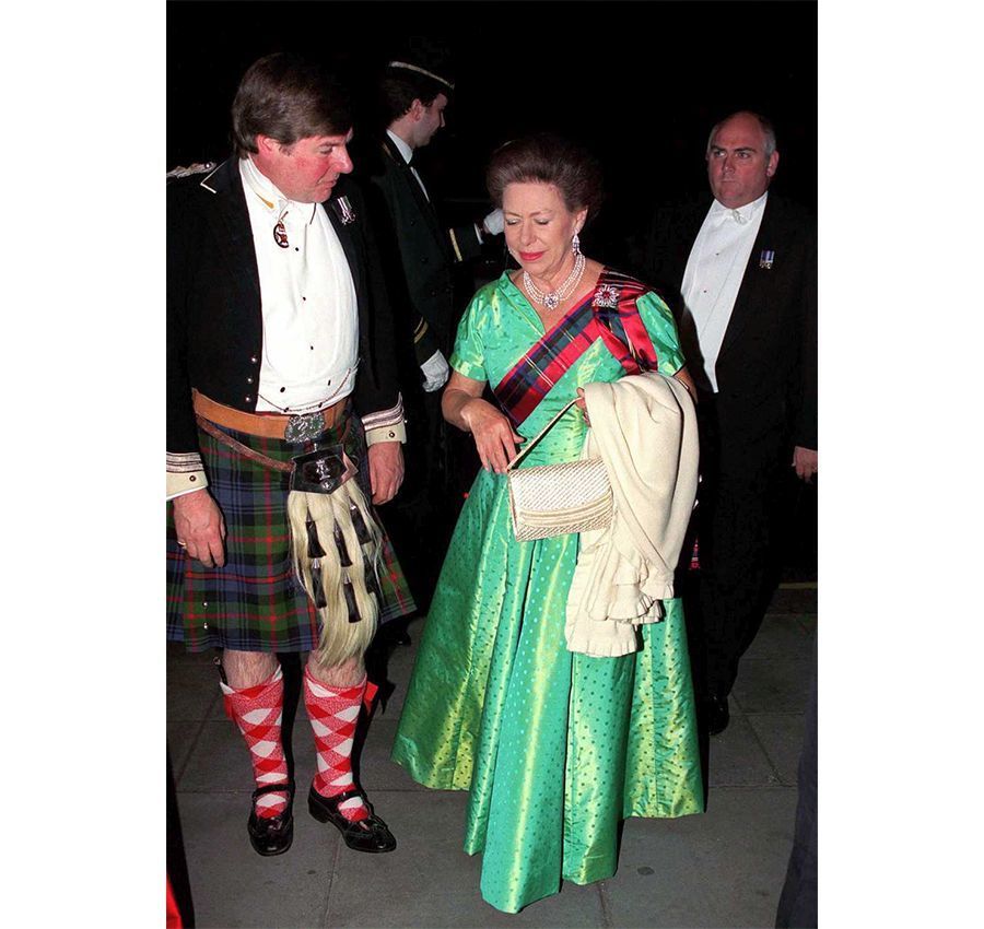 瑪格麗特公主穿著一件鮮綠色的禮服,抵達格洛芬納豪斯酒店(Grosvenor House Hotel),參加皇家喀里多尼亞學校教育信託基金(the Royal Caledonian Schools Educational Trust)和其他蘇格蘭慈善機構合辦的皇家喀里多尼亞舞會(the Royal Caledonian Ball)。