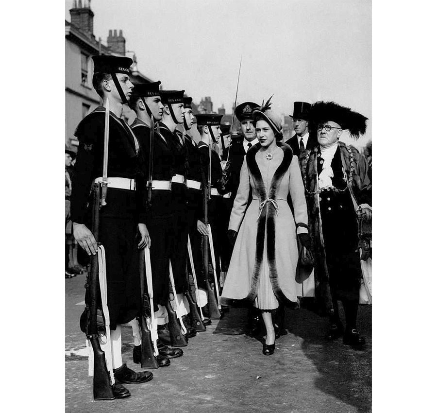1949年3月28日,儀隊迎接瑪格麗特公主的到來,隨行者為布里斯托爾市市長(the Lord Mayor of Bristol)。