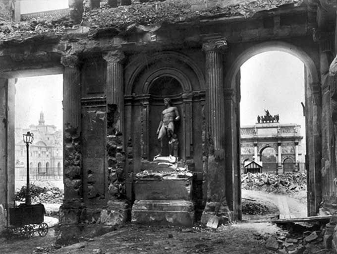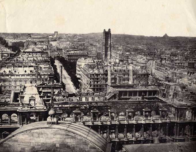 在1871年3月18日持續至5月28日期間反抗法蘭西共和國的社會主義暴動熱潮中,巴黎大部分地區被毀。起義發生在法國在法德戰爭中失敗以及拿破崙三世第二帝國(1852-70)倒台之後。路易斯·奧古斯特·布蘭基 (Louis Auguste Blanqui)領導下的共產主義部隊(巴黎公社) 企圖佔領這座城市並推翻法國政府而與國民警衛隊(National Guard)進行戰鬥。