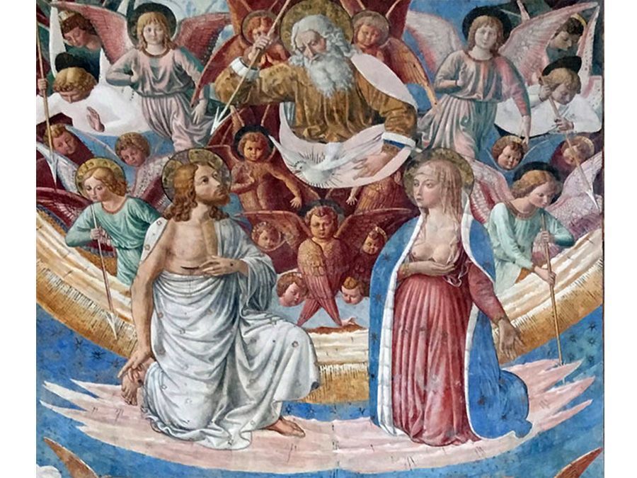 在這幅畫中,可以看出貝諾佐巧妙地利用光學效果,營造出這幅祭壇畫彷彿嵌在大理石框架內。