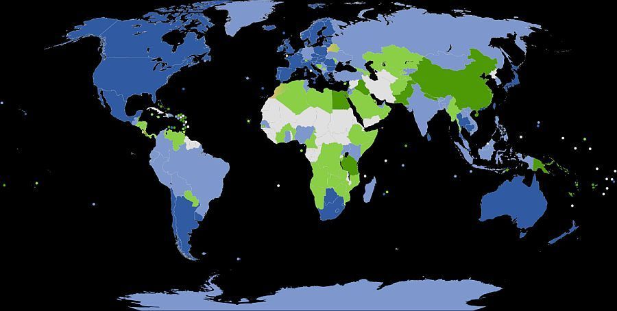 「谷歌街景」(Google Street View)涵蓋的範圍:「谷歌街景」頗受歡迎,因為它可以讓人們看到互聯網的世界。上圖表明它目前已覆蓋世界大部分的地區,但還有更多的地方等待繪製!