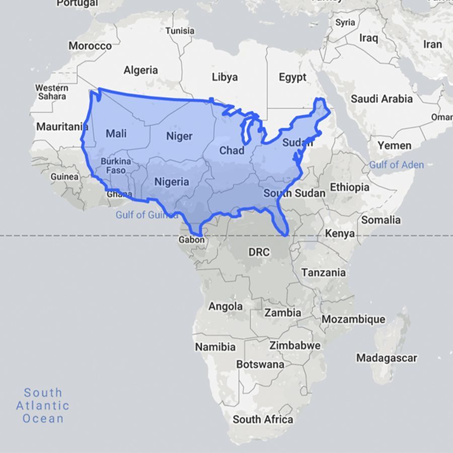 非洲很大:大多數人不知道非洲大陸究竟有多大,但是當您把美國地圖疊在非洲地圖時,可以發現非洲是美國的3倍大。